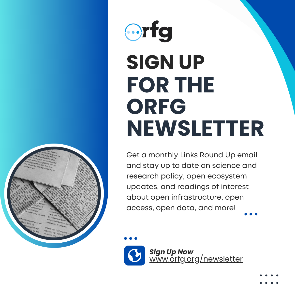 The ORFG is launching its public monthly email newsletter! Sign up now to receive a monthly email with a round of up readings to help you stay up to date on science and research policy, the open ecosystem, open infrastructure, open data, open access, and more!